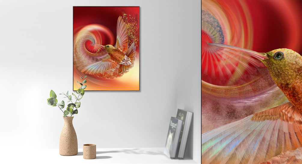 This artwork was designed to print on canvas stretched over an inner frame size 16x20 inch (40x50 cm). The image can be scaled up to 200% with minimum quality loss, or scaled down/cropped to any size that suits your needs.